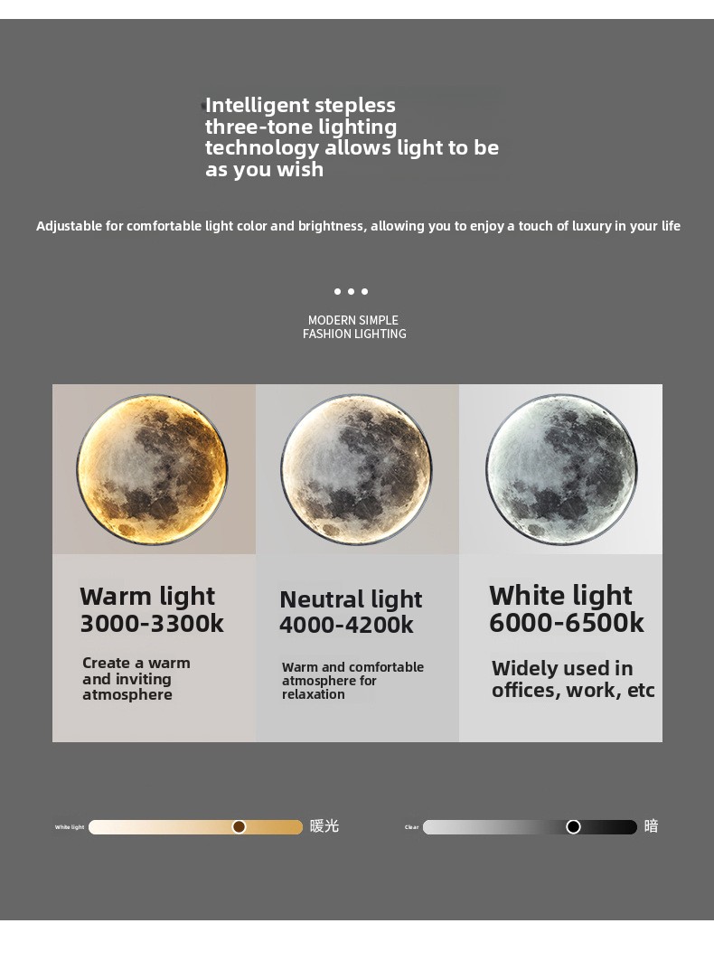 Multiple Lighting Modes: Offers white light, warm light, neutral light, three-color dimming, and stepless dimming options.
